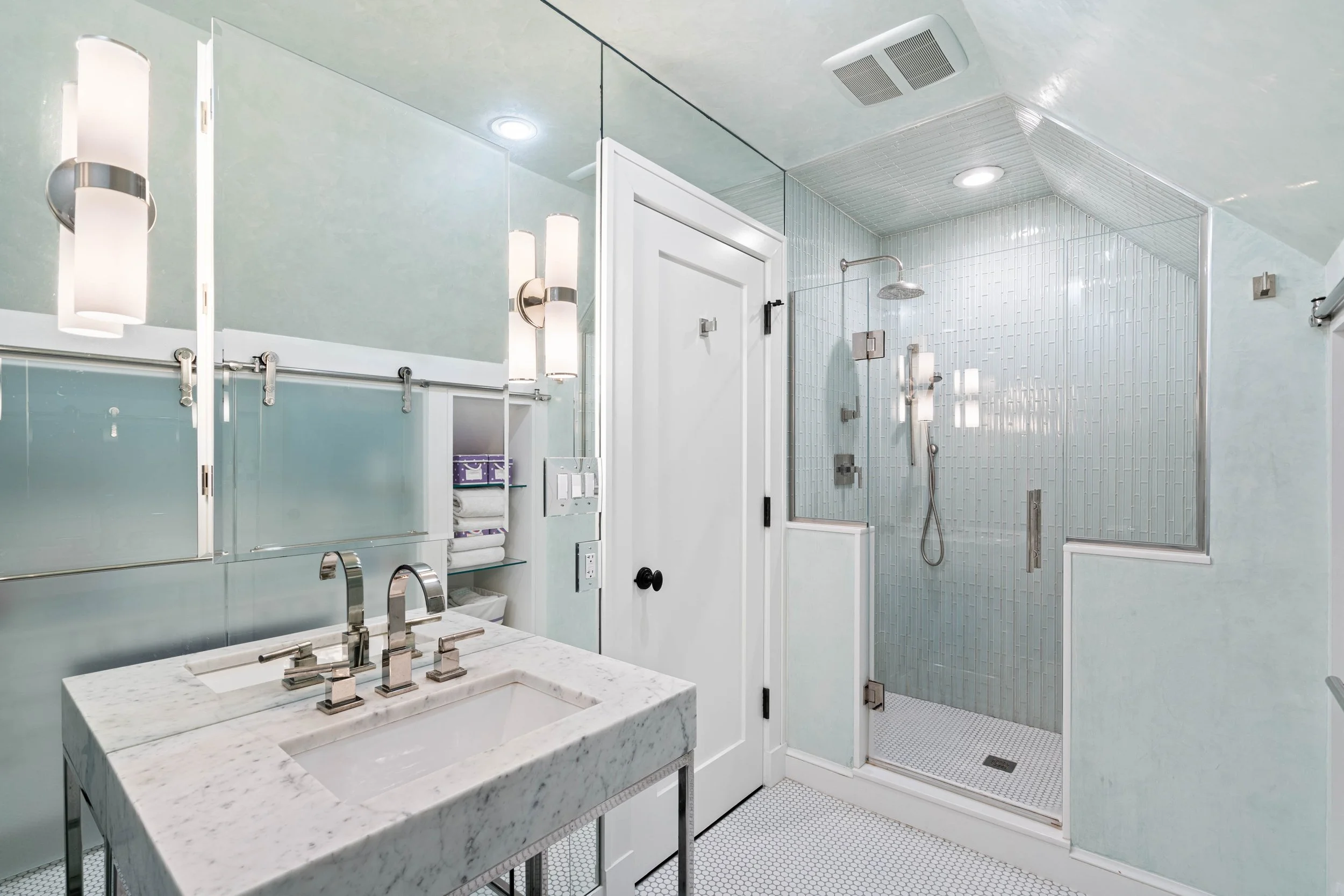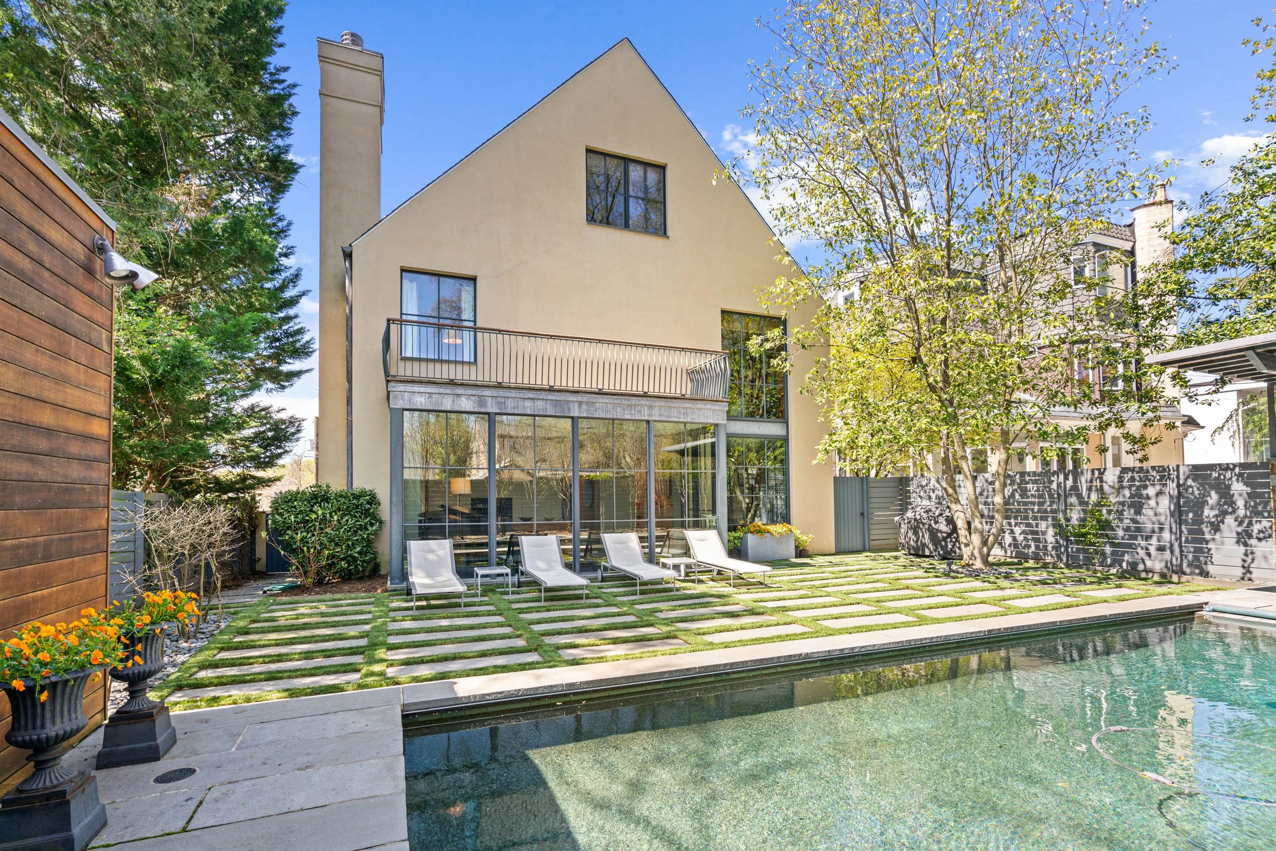 The primary suite is a haven of luxury, boasting oversized windows framing breathtaking river views, a cozy fireplace, a large elegant dressing room, and two sets of French doors leading to a private balcony. The spa-inspired primary bathroom, also updated in 2020, is an oasis of relaxation, enveloped in marble, featuring soaring ceilings, programmable heated floors, dual vanities, a luxurious shower with multiple shower features, and a separate soaking tub. Ascending to the third floor, two additional bedrooms await, each offering window seats and ample closet space, along with a hall bathroom featuring a frameless glass shower and concealed built-in vanity. The lower level features a media/recreation room with built-ins, discreet space for gym, a temperature-controlled wine cellar, a powder room, and a full guest and/or staff suite with a kitchenette, bathroom, and separate entrance. Additionally, the center stairwell is open from the ground through to the top floor, providing an open connection to all the spaces throughout the home. Outside, the rear exterior is exceptionally private, boasting a sizable pool and outdoor powder room, professional landscaping and hardscaping by landscape architect Gregg Bleam, as well as a covered table seating area, which is ideal for entertaining. The residence is easily accessible to downtown DC and Northern Virginia, as well as neighborhood favorite parks, restaurants, and shops. With its exquisite blend of sophistication, functionality, convenience, and breathtaking views, this home offers an unparalleled lifestyle in one of Washington D.C.'s most coveted neighborhoods.
